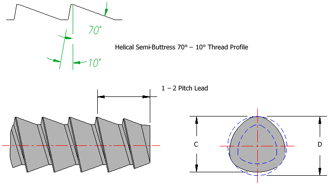 Die schräge Gewindeform ermöglicht zusammen mit dem TRILOBULAR® Querschnitt eine Luftverdrängung im Kernloch, die während der Montage entweichen kann. Der hydraulische (tubussprengende) Effekt am Bauteil wird minimiert. Die Kombination aus der 70°–10° halbverstrebten Gewindeform der PUSHTITE® II™ Schraube und der TRILOBULAR® Form sorgt sowohl für ein leichtes Einsetzen als auch einen enormen Ausreißwiderstand. In einigen Kunststoffen erhöht sich der Ausreißwiderstand über die Zeit durch das Setzverhalten.