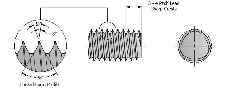 POWERLOK® II™ 나사는 선행 나사산 너트 또는 나사산 홀에 사용되며, 머신 스크류 또는 미터 나사를 사용할 때 생기는 크로스 스레딩에 관한 전형적인 염려가 있는 조건에서도 사용됩니다. POWERLOK® II™ 나사는 머신 스크류 및 미터 나사의 크로스 스레딩에 대한 잠재적 가능성을 검사하는 데 사용하는 것과 동일한 테스트 절차와 장비를 사용하여 기동효율이 평가되었습니다. M6 x 1 POWERLOK® II™ 나사를 크로스 스레딩 방지 기능을 갖춘 주요 경쟁 나사 제품과 비교하는 광범위한 테스트에서 경쟁 나사 제품은 크로스 스레딩 발생률이 111%에 달한 데 비해 POWERLOK® II™ 나사의 경우 크로스 스레딩이 전혀 발생하지 않았습니다. 이 테스트는 표준 상업용 나사산 너트의 여러 개의 다양한 유형에 7도 및 9도의 축외 각도를 사용하여 실시되었습니다. 테스트 데이터는 요청 시 제공됩니다. POWERLOK® II™ 나사 디자인에 포함된 표준 4피치 날카로운 크레스트 리드 나사산은 탁월한 크로스 스레딩 방지 기능을 제공합니다.